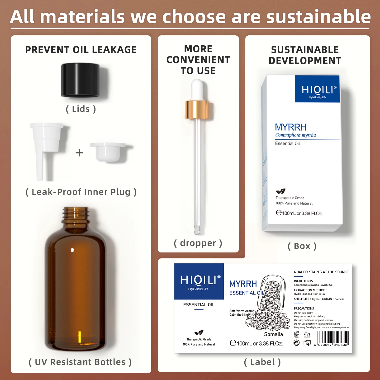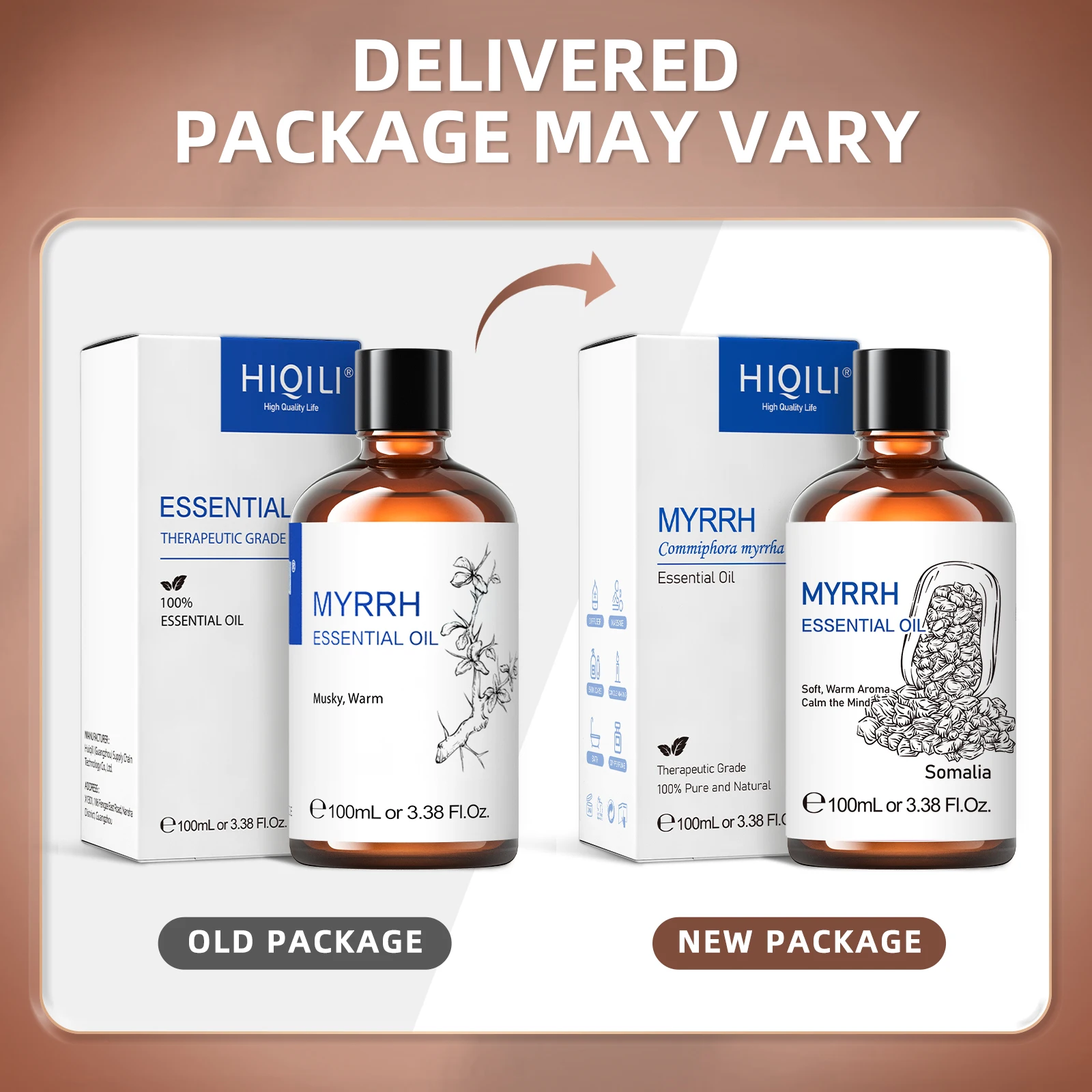 Myrrh essential oil can moisturize dry and frosty skin and is effective for wrinkles. One of the basic fragrances that make a perfume, it feels warm and pleasant. Enhance the vitality of the brain, restore the vitality of mind and body, and clear the mind. Avoid it for pregnant women, and most people should not use it at high doses.